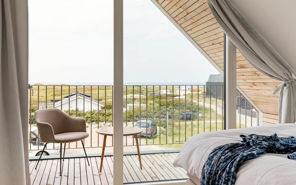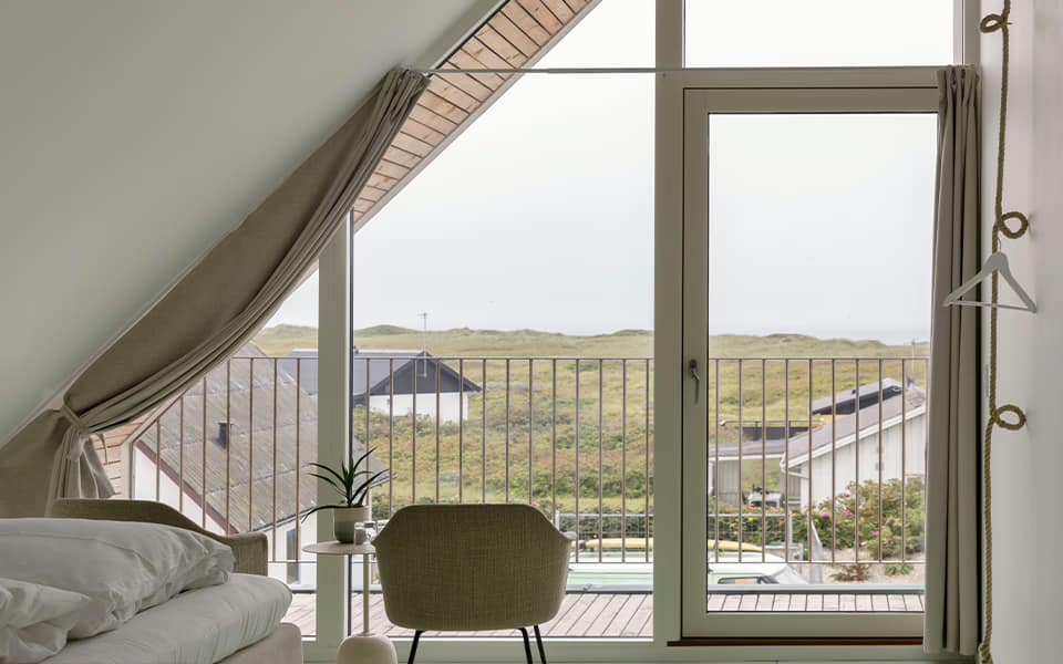 Værelset byder på lys og luft, med rolig atmosfære og nærhed til både hotellets faciliteter og den vestjyske kyst.