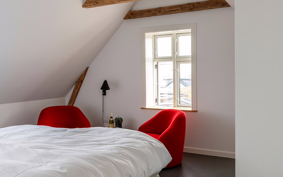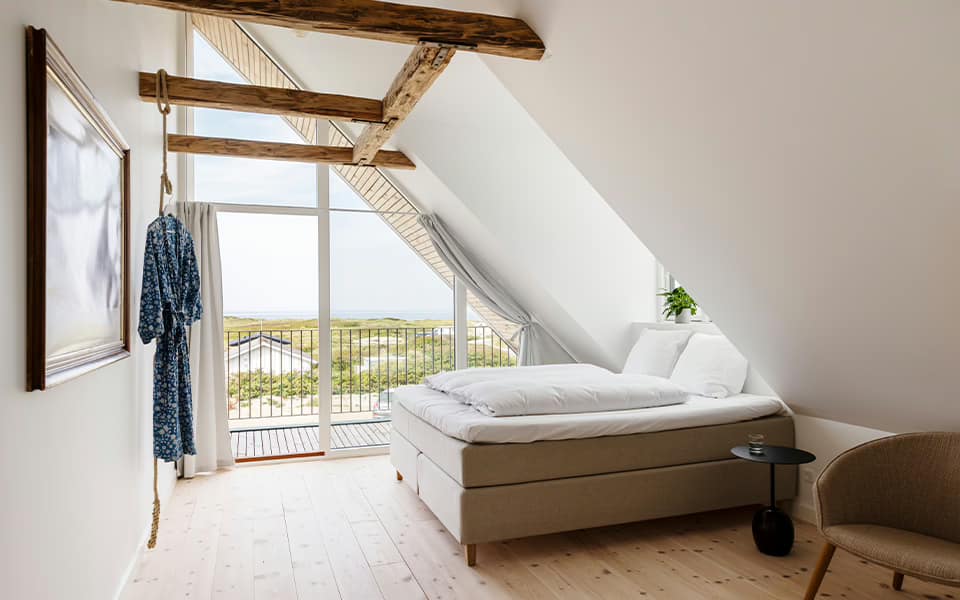 Værelset byder på lys og luft, med rolig atmosfære og nærhed til både hotellets faciliteter og den vestjyske kyst.